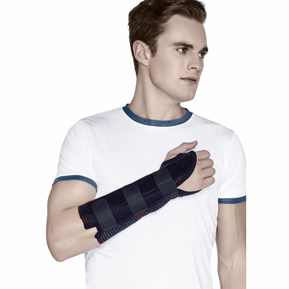 Scientifically designed to support the wrist and forearm while maintaining them in a functional position, allowing free movement of the fingers and thumb. The breathable and skin-friendly composite material ensures comfort, and the malleable metal splint conforms to the wrist’s shape, easily interchanged for right or left use. Universal one size fits all.