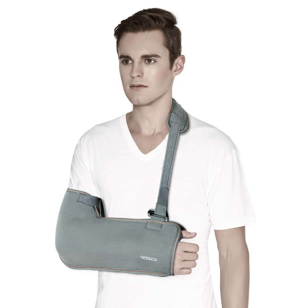 The sling is scientifically designed to support the shoulder in a resting position. It features a loop strap system for easy height adjustment and a thumb lock to maintain the arm in place, providing immediate therapeutic relief.